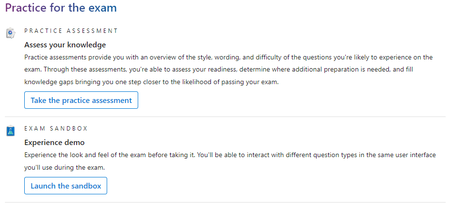 Below is the link to the Microsoft site in order to get hands-on with some of the Azure resources that they tailor in modules for practice! Furthermore, they have a practice exam which I would recommend taking once you’re confident in the content in order to get the most out of the sample exam.